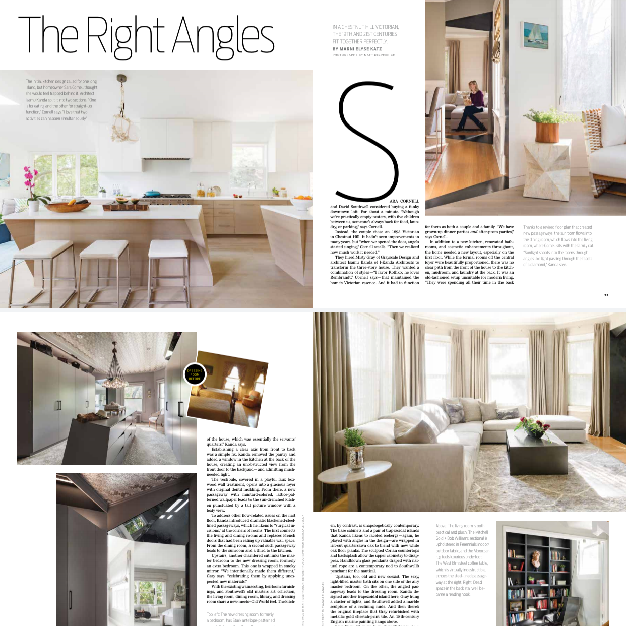 Statement-making angles and passageways give 21st-century flair to a Chestnut Hill Victorian, as a couple with a blended family of five reenvision a stately home for modern living.